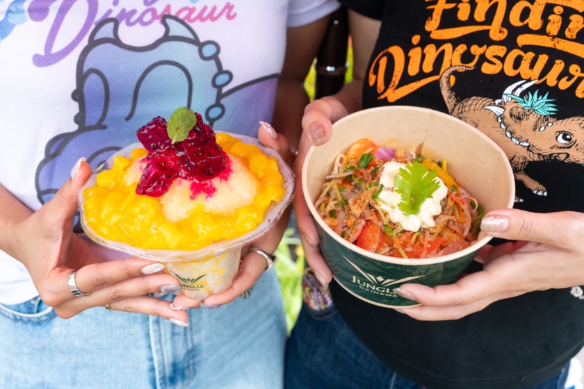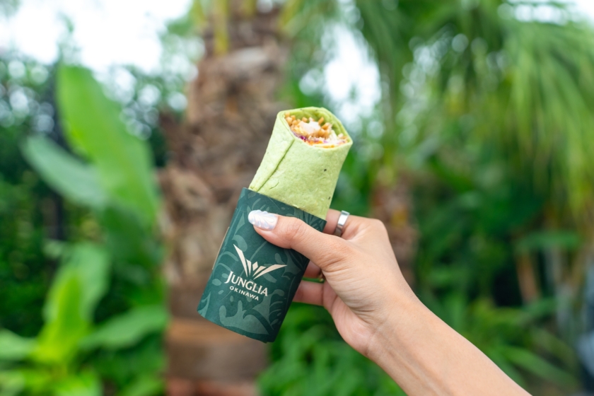 ジャングルをイメージしたトルティーヤでラップした沖縄そばの焼きそばサラダ。焼きそばパンをイメージしながら口に入れると、ひんやりとした口当たりにビックリ!馴染みのある沖縄そばの食感と程よい濃さのソース味、そしてキャベツや人参など、さっぱりとした野菜のシャキシャキ感も一緒に感じられて「焼きそばサラダ」の名前に納得!暑い日のエネルギーチャージにもピッタリのフードです◎