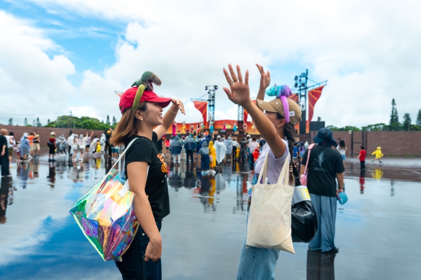 ちなみに、私たちが行った日は天気が不安定で、雨が降ったり止んだりを繰り返していたので、折り畳み傘を差しても、横から入る雨でバッグや持ち物は少し濡れてしまいました。(一応、対策としてバッグの中の貴重品などは、ジップロックに入れていました!)友人はアウトドア用の防水バッグで来ていたので、雨や水に濡れるアトラクション(ショー)などに参加することも考えると、撥水加工のバッグで行くのがオススメです!