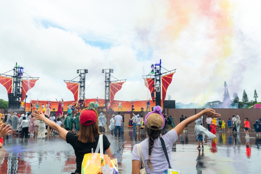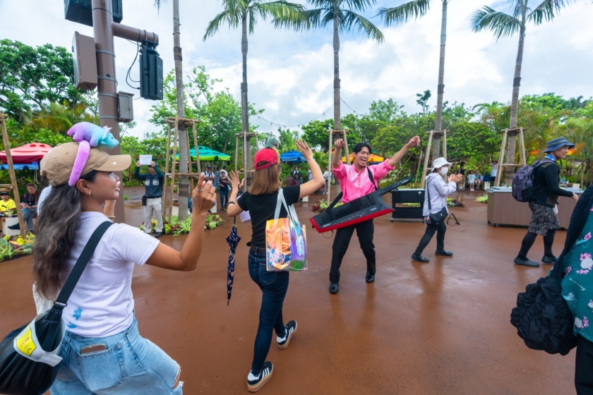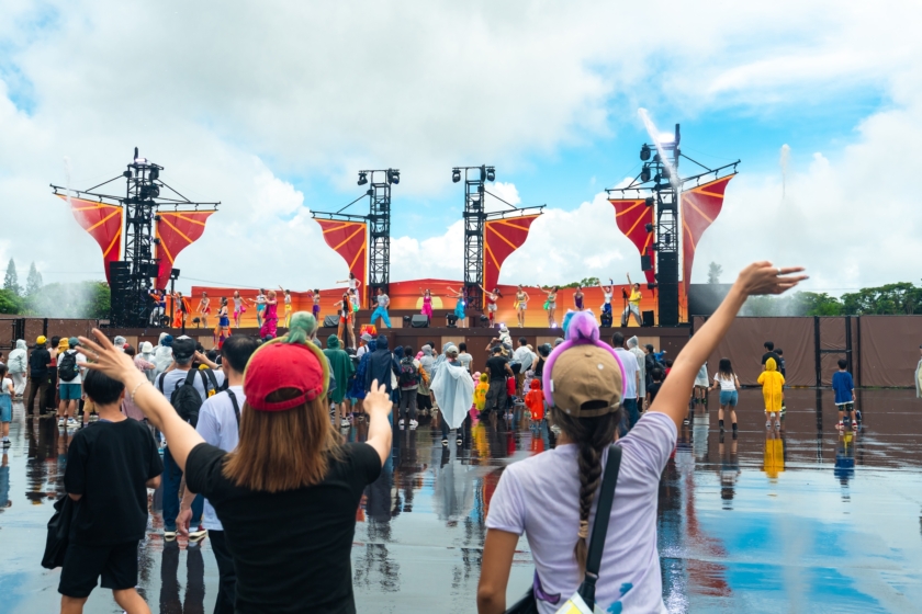 沖縄を感じる音楽やダンスと共に、豪快に放たれる水しぶきを浴びて、カチャーシーを踊ったりジャンプしたり、会場が一体となって楽しめるスプラッシュショーでした!
