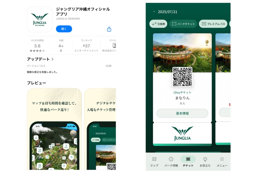 また、沖縄ツーリストの「ジャングリア沖縄プラン」に付いているチケットは、事前に送られてくるチケットを出発前にアプリへ読み込んでおけるため、そのままゲートを通過してパークへ入場することができます!当日引換所でチケットを引き換える手間もないのでオススメですよ〜!