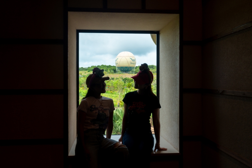 ちなみに、エントランスからアトラクションエリアに向かう途中、1階に降りる階段の途中で見つけた窓でもシルエットが可愛い写真が撮れたので、こちらもフォトスポットとしてオススメです♪