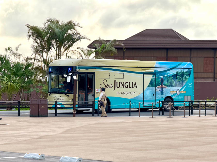 スパ専用のパーキングもありますが、パークの駐車場からシャトルバスで移動することもできます。