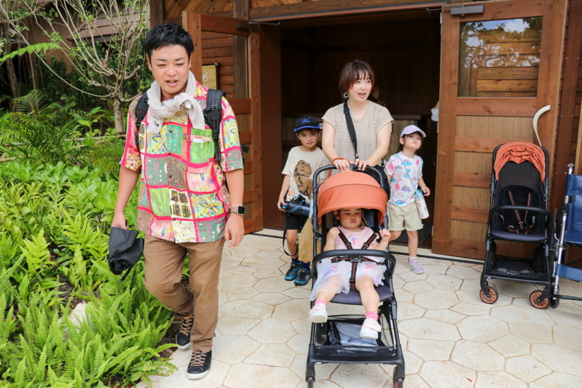 小さなお子さん向けに、ベビーカーの貸し出し(1,000円/1日)も行っています。同じ距離を歩いたとしても、大人の歩幅と子どもの歩幅は全然違いますからね。