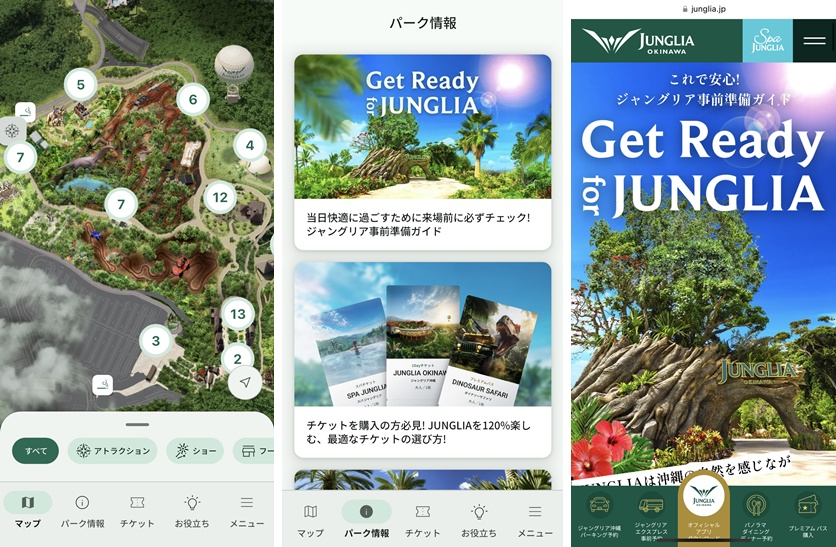 入場時には「JANGLIA沖縄公式アプリ」が必要なので、事前にダウンロードをしておいた方がスムーズです。購入・引換をしたチケットにそれぞれ付いているQRコードをこのアプリで読み込んだ後「アプリ上のチケット」で入場します。