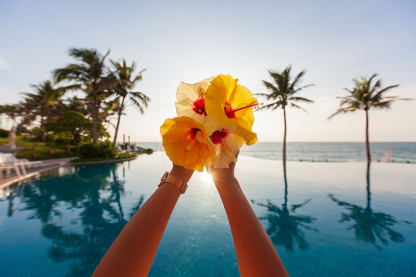 ホテルに咲いているハイビスカスは100種類以上。嬉しいことに、私たちゲストが持ち帰る事ができるように、ホテルのロビーには日替わりでハイビスカスの花が用意されているんです。