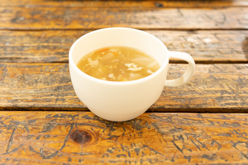 卵と野菜が入ったとろみのきいたスープに、ホッと一息つきながらお待ちくださいね。