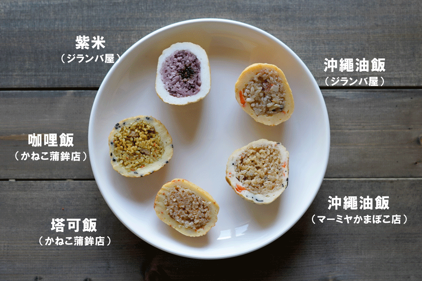 マーミヤかまぼこ店賣的不是叫做爆彈飯糰,是以「飯糰魚板」來販售^^