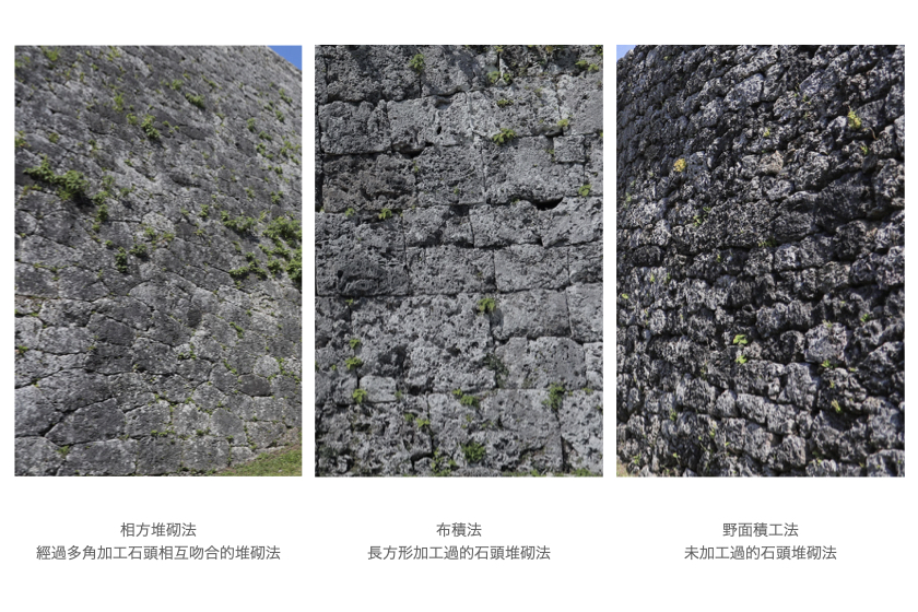 在座喜味城跡可以一次看見沖繩GUSUKU的三種石牆的堆砌方式。