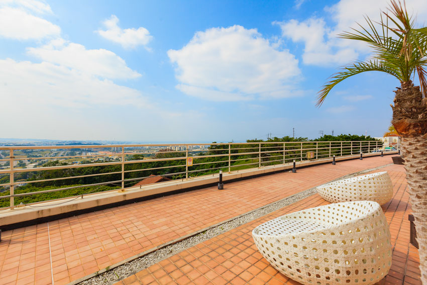 位於高台的飯店可以由露台讓您瞭望讓您療癒景點的♪晴空萬里藍天白雲的夜晚可以看到滿天的星斗。