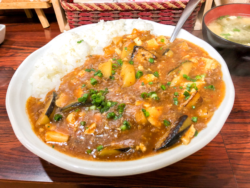 大量島豆腐(木綿豆腐)所製作的【麻婆茄子】