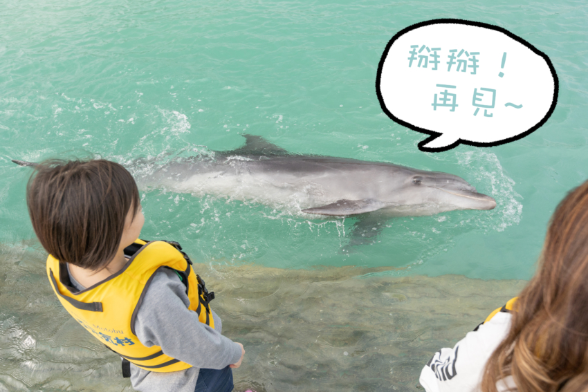 最後,與療癒系的海豚離別時…海豚竟然!!以優雅的姿態側身與我們說再見,呀~~可以衝下去抱抱牠嗎!!!