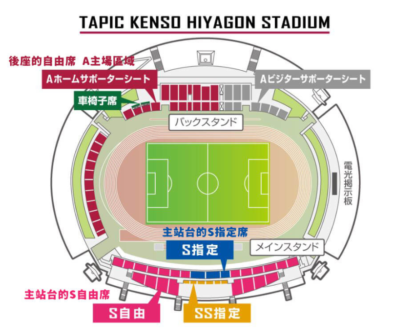 雖然這裡的位置並非指定席,但是不管是常看足球的人還是第一次看比賽的人都很適合的座位區域♪