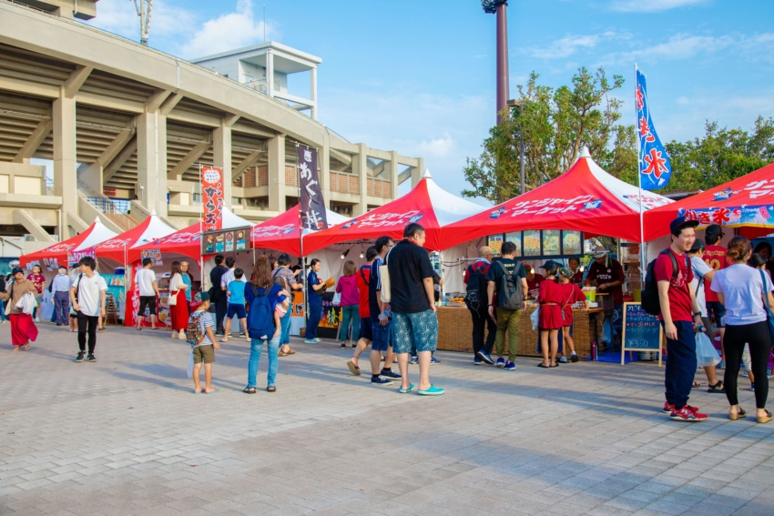 ▼小野深二選手登場時也因為肚子餓跑去買東西了…幾乎每一攤都有同樣肚子餓的人而大牌長龍…!但是,正因為如此就更像祭典一樣的氣氛了呢♪笑