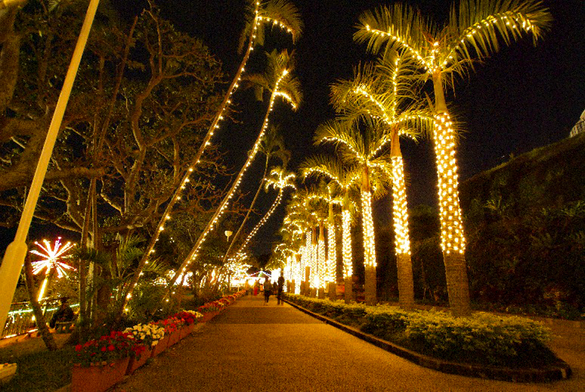 閃亮亮發著光的椰子樹們、在沖繩只有這個時節才看的到的景象呢。