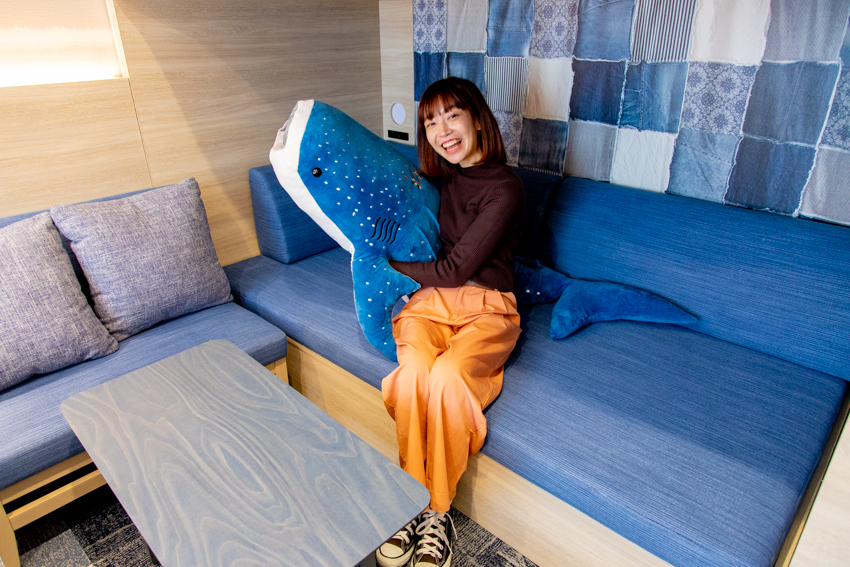 這邊的客房也一樣,小妹坐著的沙發也可以變身成床鋪,一間房間最多能容納3位旅客。