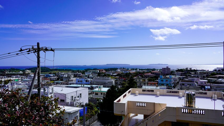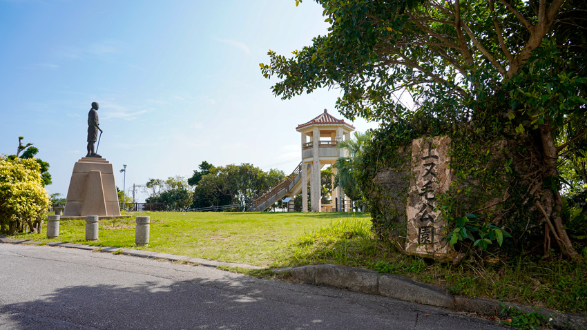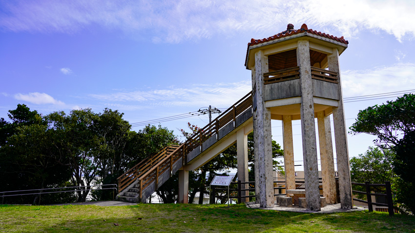 從公園內的高處可以眺望金武灣。天氣晴朗的日子面向町內的方向可以一併連同蔚藍的海水一覽無遺♪