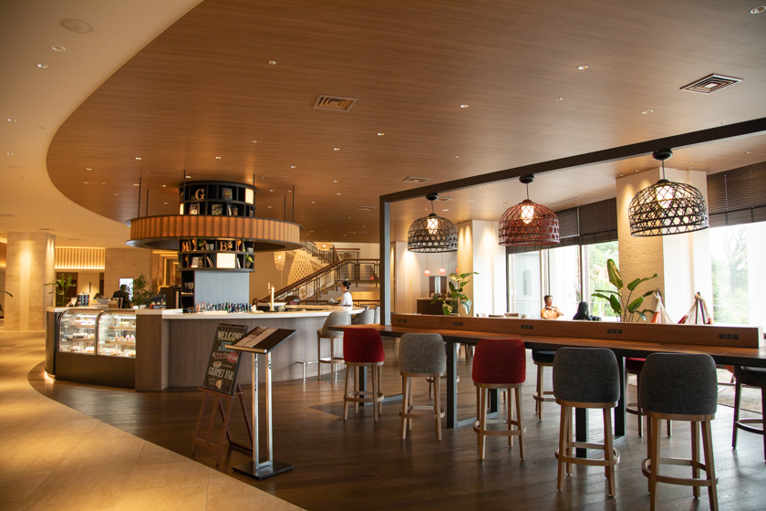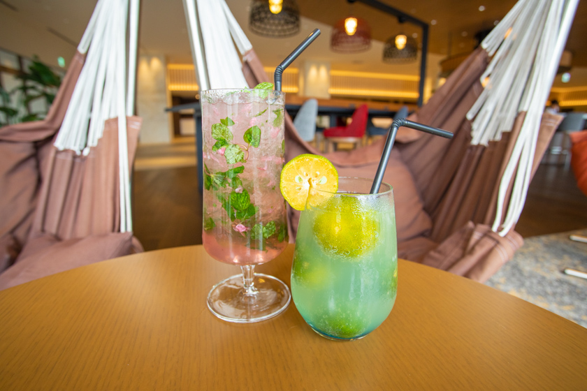 首先先在沖繩那霸諾富特飯店的「美食吧」一邊喝杯飲料,一邊等車。