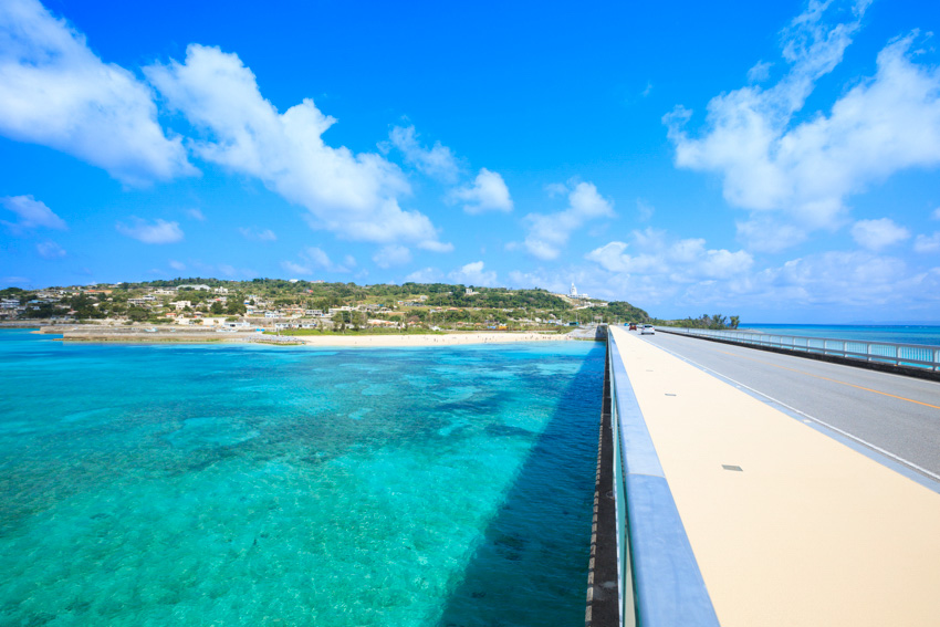 開車前往被大海包圍著的古宇利島,這裡有超人氣的觀光設施和能量景點,也可以享受海水浴和沖繩大自然,同時也適合觀光,最棒的島。