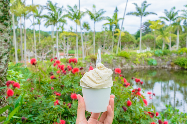 八重瀨場的町島香蕉、讀谷產的紫番薯、山原產的雞蛋製成的卡士達醬等,使用沖繩縣在地的原物了所製成的東南植物樂園原創義士冰淇淋約有20種,讓您會有選擇性障礙!沒有使用著色劑・沒有添加香料,讓您的小孩可以安心的食用,是一個很推薦的甜品,想要喘口氣可以來一下喔!