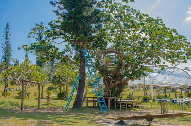 位於牛・藝術體驗廣場的旁邊樹屋。為了小孩….前往至此的大人也非常的興奮、回神過來比小孩更加樂在其中的人也不少!不管幾歲看見樹屋都變得童心未泯呢~♪