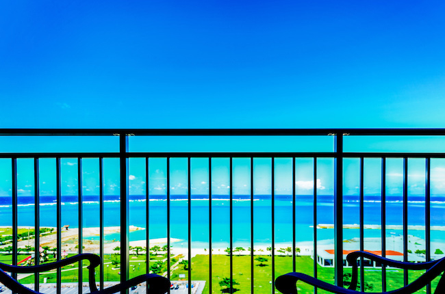眼前的寬闊的景色是美到不行的琉璃色海灘。迎著遠方吹來徐徐海風,在陽台喝著雞尾酒輕鬆的享受貴婦生活…… 真的是太奢侈了!!