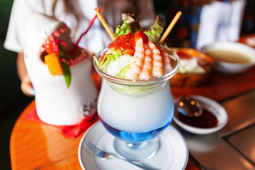 →使用時尚的器具將冰過的蝦子裝在裡面所以稱為”蝦子調酒” ♪