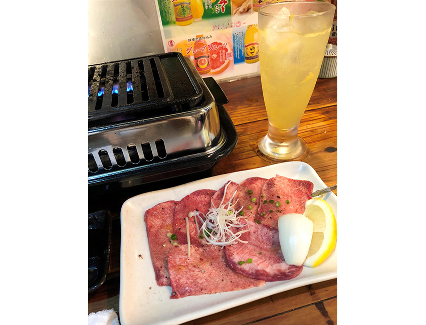 →沖繩縣產黑毛和牛的極上牛舌跟請福泡盛調葡萄柚加香檸加碳酸水