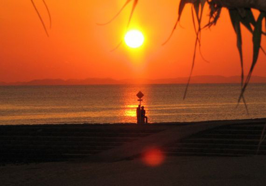 染成橘紅的海景,務必與家族成員一次的一起觀賞♪