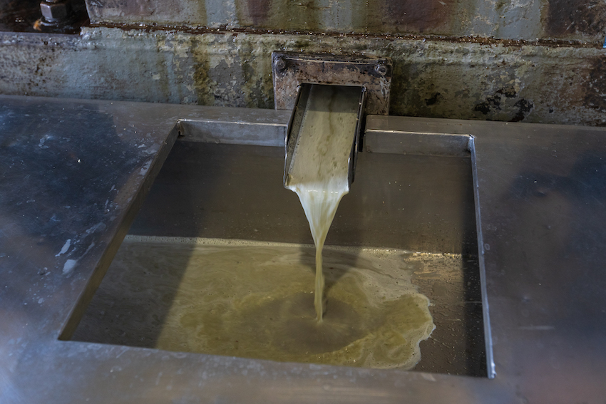 剛剛鮮榨出來的甘蔗汁,就在旁邊的大鍋中熬煮著!