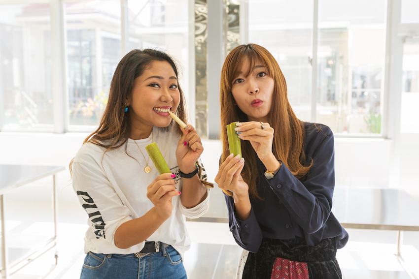 真的榨甘蔗汁,我們兩個的第一次2人。有一點點的緊張♪