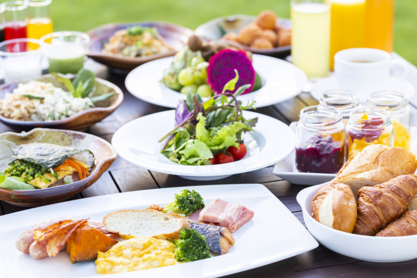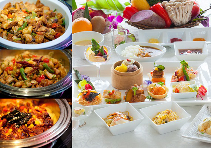 除自家栽種或契約農場直送的現採蔬菜之外,還有大量使用沖繩本地食材的豐富菜單,可以盡情享受中、日、西式餐點。