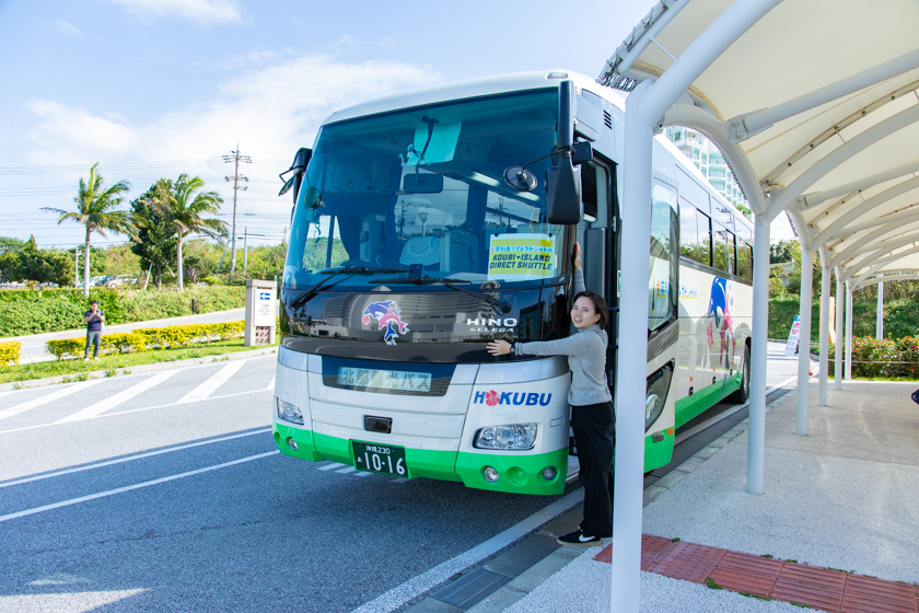 is a bus exclusive to passengers who took the [Okinawa Airport Shuttle] that connects Naha to the northern area of Okinawa! This shuttle is really like something out of a dream, offering a convenient, free transportation method to get from the Emerald Beach bus stop to Kouri Island.