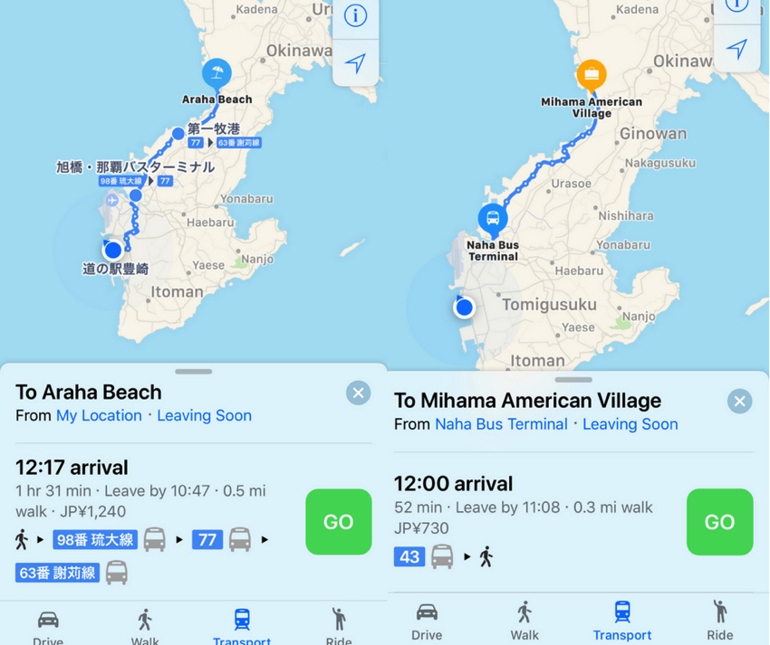 simply go on your maps and type in Araha Beach or Mihama American village. Click on the transport button and it will show you exactly where to take the bus from. The bus will notify you on which stop to get off for American Village, listen out for the announcement on the bus.