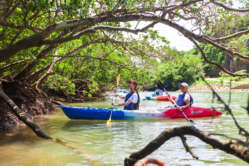 Kayak is conducted on Hijagawa river which is easy to access on foot from Kadena fishing port.