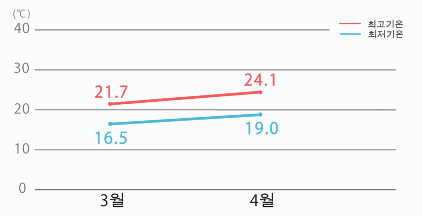 낮에는 따뜻하지만 바람이 강하게 부는 날은 춥게 느껴질 수 있으니, 반팔 위에 가볍게 걸칠 수 있는 겉옷만 준비하면 퍼펙트♪