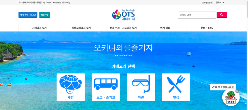 오키나와 액티비티 예약 사이트 One Two Smile ACTIVITIES 에서 사전 예약을 하고 렛츠고-!
