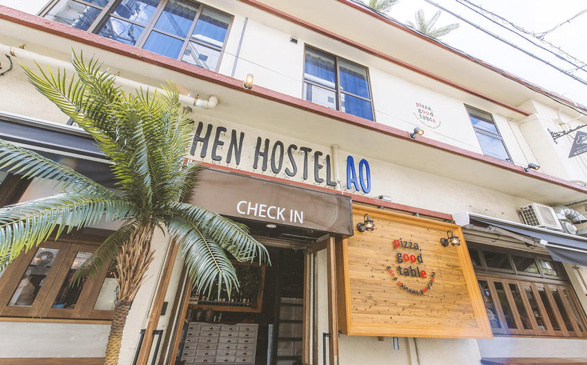 「더 키친 호스텔 AO」는 나하시 쿠모지에 있는 스타일리시한 도미토리입니다.