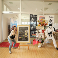 이에마을 지방 자치체 소속의 지역 마스코트「탓짱」도 보이네요. 특산품인 땅콩 모양의 바지가 귀여워요.