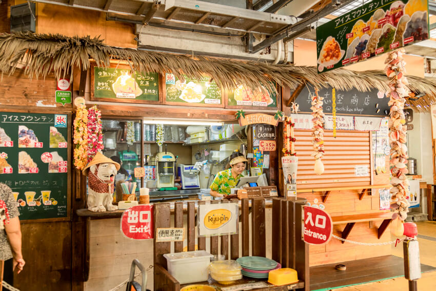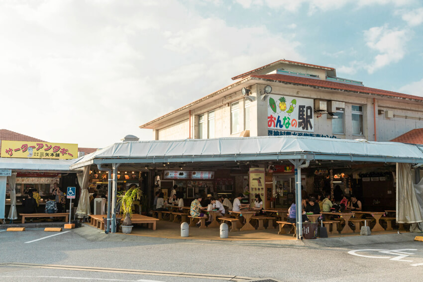 온나 역의 나카유쿠이 이치바는(나카유쿠이 시장) 오키나와의 맛있는 현지 음식이 많이 모인 휴게소. 현지인들로부터 오랫동안 사랑받고 있는 곳입니다.
