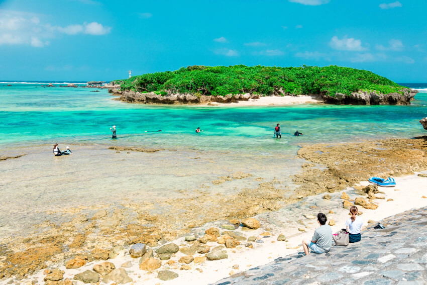 다른 비치와 비교하면 간조 시는 수심이 얕고 파도도 잔잔하기 때문에 스노클링 초보자와 어린이 동반에 추천하는 장소◎◎