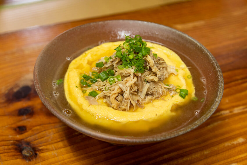 ▼이 중에서도 인기가 많은 메뉴는「토종닭 황금 소바」(850엔)