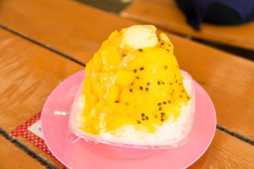 파인애플과 망고, 패션 후르츠. 망고 아이스가 많이 들어간 빙수.