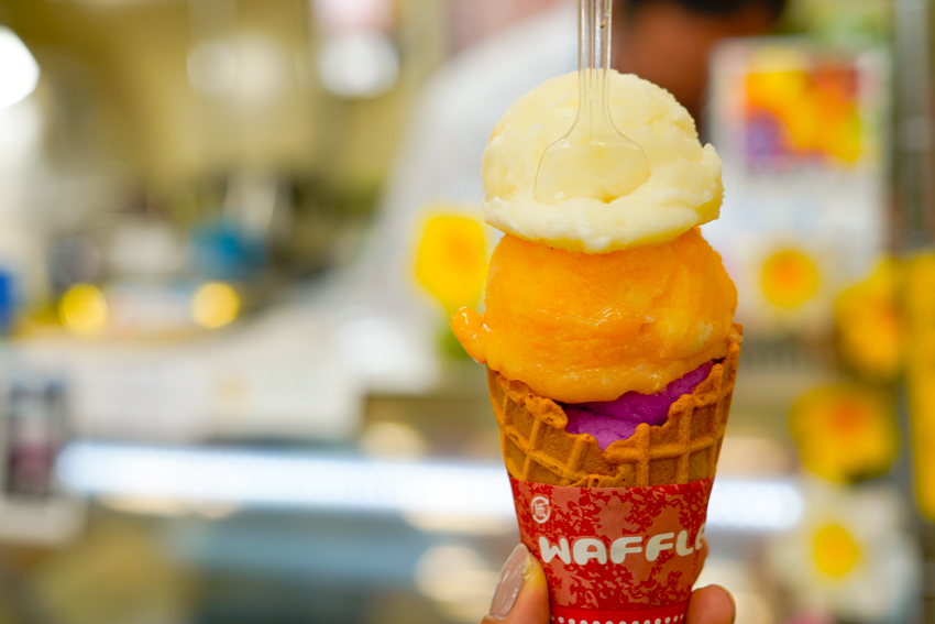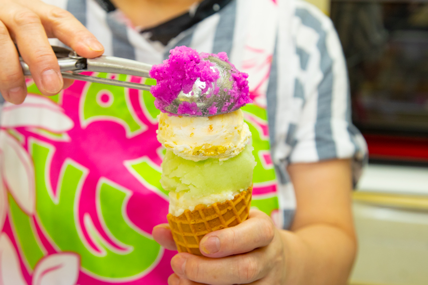 오키나와산 과일과 젤라또를 주문을 받고 나서 그 자리에서 바로 믹스해서 만드는 것이 특징