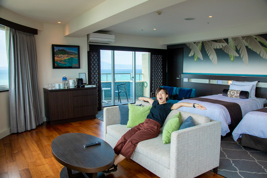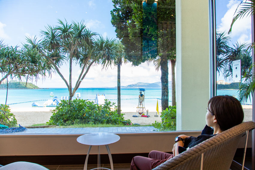 「카네히데 키세 비치 팰리스」에서는 로비에서 객실까지 오키나와의 아름다운 바다를 맘껏 즐길 수 있습니다♪