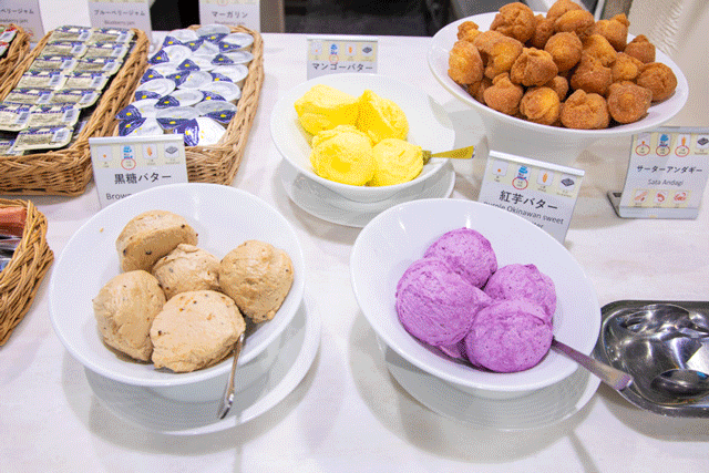 버터인데 식감이 부드러운 생크림보다도 더 가벼운 식감으로 적당히 달달해서 망고맛・베니이모(자색고구마)맛・흑당맛과 갓 구워진 빵과 함께 모두 정복하고 싶어질 정도로 맛있어요. (゚∀゚)