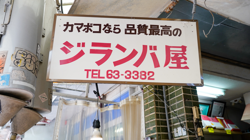 이전하기 전의 마키시 공설시장 1층에 있는 「카네코 어묵점」.