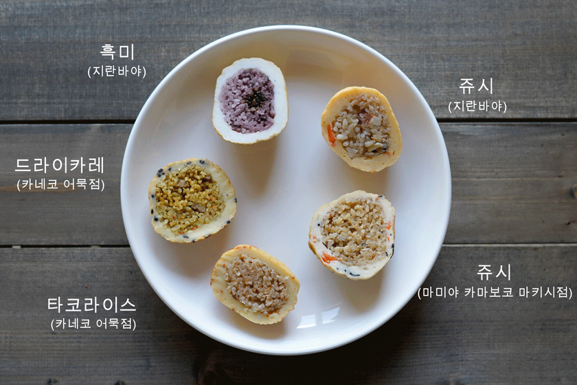 흑미는 중간에 들어간 차조기 다시마가 맛의 정점이 되어 JMT!! 흑미와 어묵의 맛을 더욱 돋보이게 합니다♪