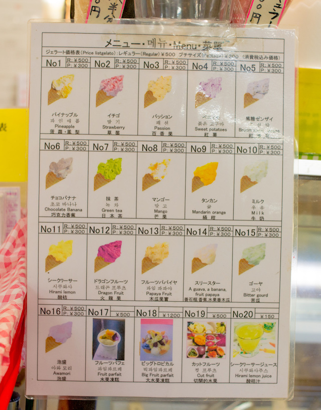 주문을 하면 과일 과육을 베이스로 한 젤라또를 섞어서 만들어주며 과일은 제철의 오키나와현산 과일을 사용합니다.