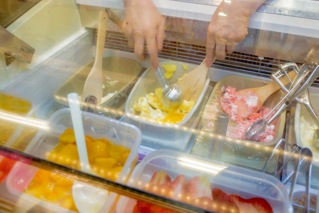 주문을 하면 과일 과육을 베이스로 한 젤라또를 섞어서 만들어주며 과일은 제철의 오키나와현산 과일을 사용합니다.