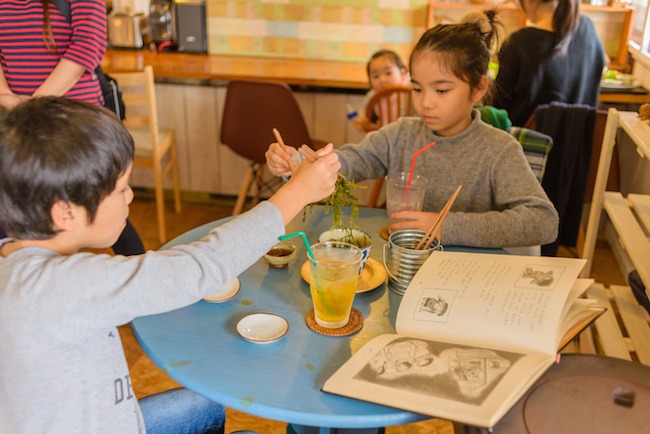 농장 내의 ”3 Peace Cafe”는 집같이 편안한 분위기로 우미부도는 물론 식사와 디저트도 OK!